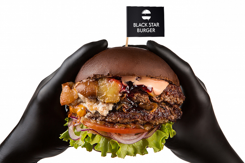 Black Star Burger - the first who brought into fashion there are burgers in black gloves.
