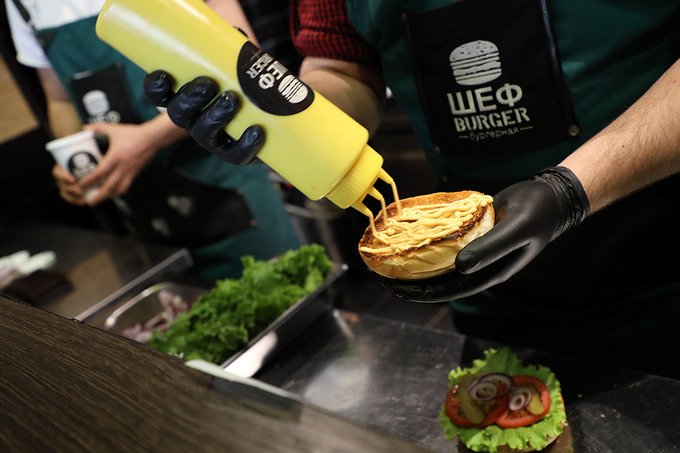 When ordering Mega- and VIP- burgers, the waiter makes an order to the guest, all this is accompanied by 5 bells and a firework.